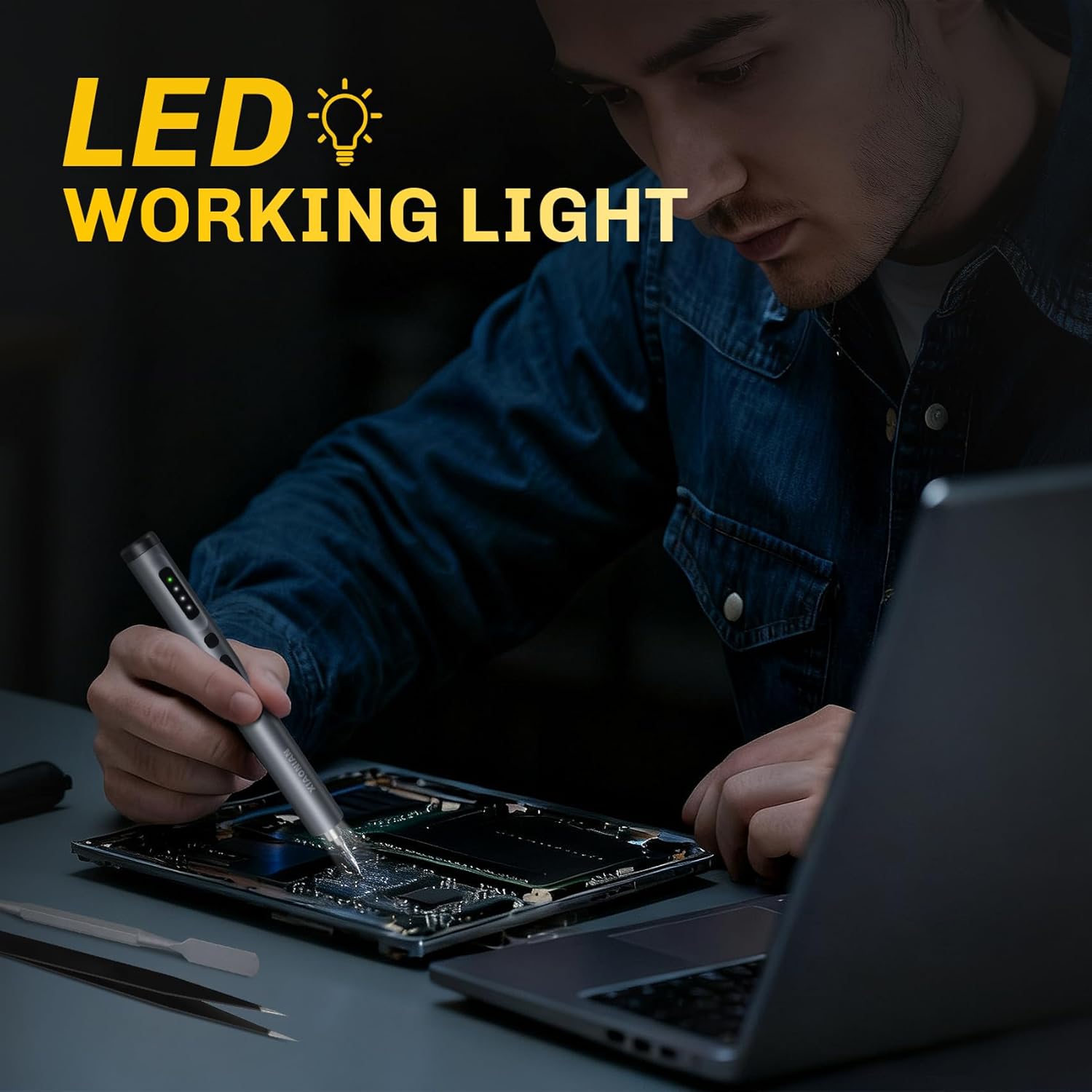 Absolutely. The adjustable torque control and 4 LED lights make it ideal for precision electronics work. Many users specifically choose this tool for phone repairs, laptop servicing, and console repair because it prevents stripped screws and gives you complete visibility.